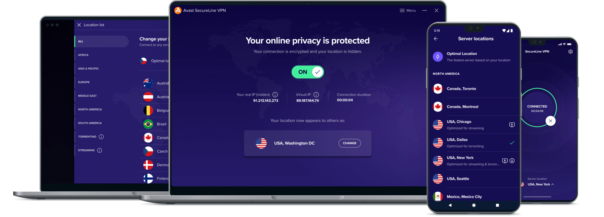 With the Avast SecureLine VPN, you can experience complete online freedom, anonymity, and security, all in one package.