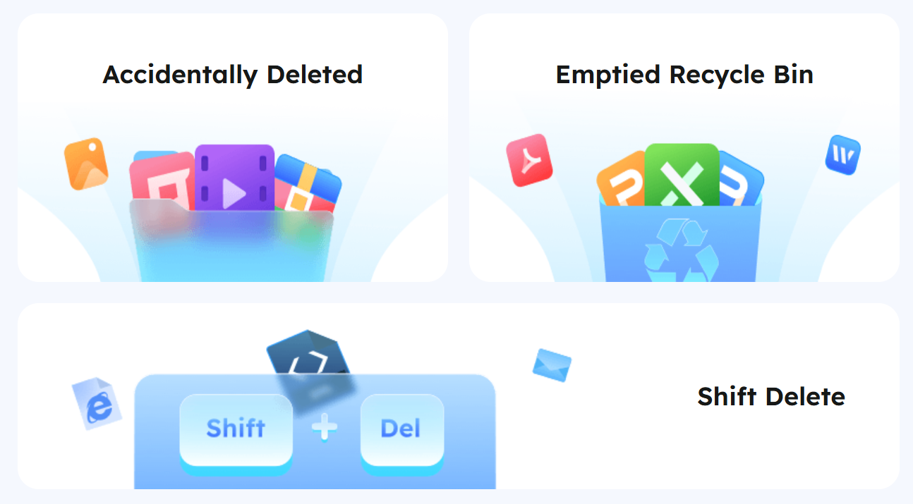 Restore files lost to accidental deletion, formatting, partition loss, virus attacks, or system crashes. - 💾 Supports 1000+ File Types