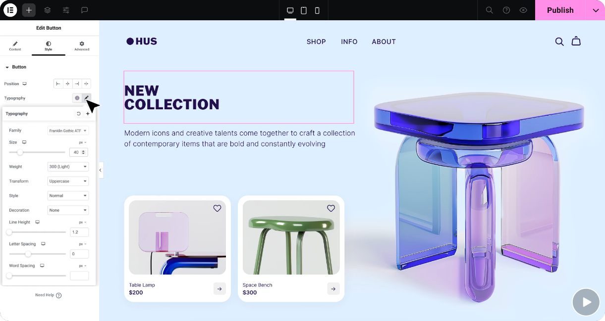 With Theme Builder, you can design your entire website, including headers, footers, and blog layouts.
