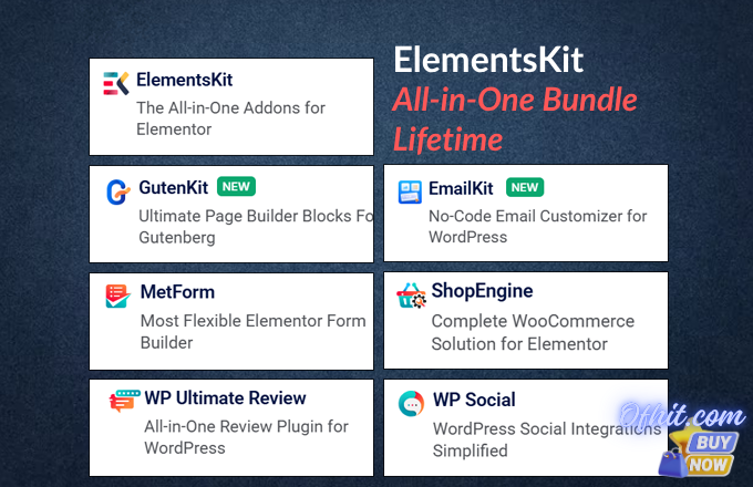 It’s a lifetime bundle that includes 7 premium WordPress plugins such as ElementsKit Pro, ShopEngine Pro, MetForm Pro, GutenKit Pro, WP Social Pro, and more — ideal for building advanced WordPress and WooCommerce websites.